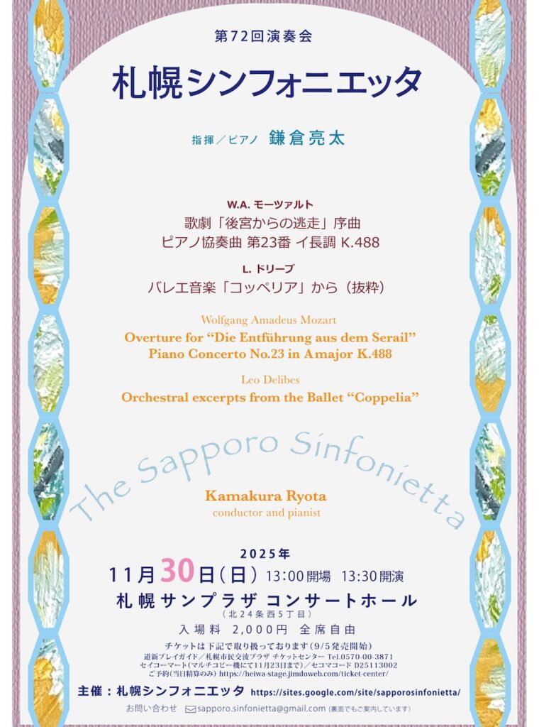 9月のバレエ公演でお邪魔させていただいた札幌シンフォニエッタさんに、またお邪魔させていただきます!